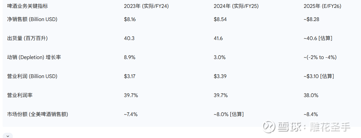 ,反映了市场对啤酒业务营收放缓和毛利压缩(因铝价和关税)的深度悲观 。