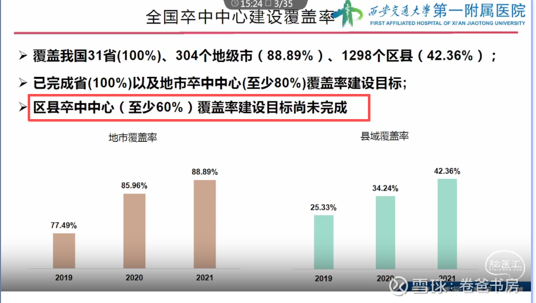 医院层面,最低卒中中心的覆盖率仍未完成。