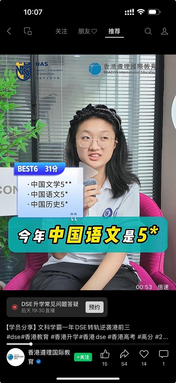 这两天精英汇旗下的遵理教育在微信狂刷屏,几个深圳学校合办的香港DSE课程成绩斐然。这个坪山校区的学生在高三才转战DSE,只用一年时间就考了31分,进港大无悬念,用香港成绩进交大、复旦估计也没问题。进清华、北大文学院估计有一半机会。