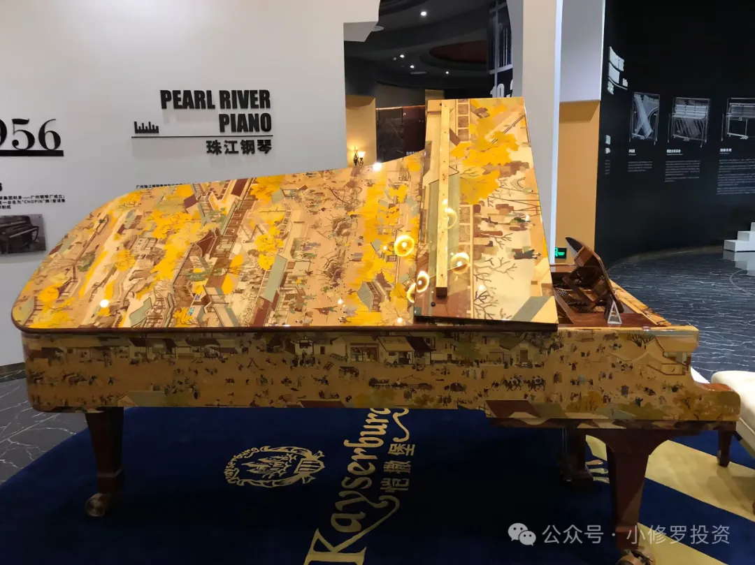 珠江钢琴也会接高端定制业务,这台是建国70周年定制钢琴,曾在特殊的日子在天安门广场演奏,琴上有多名大师签名。
