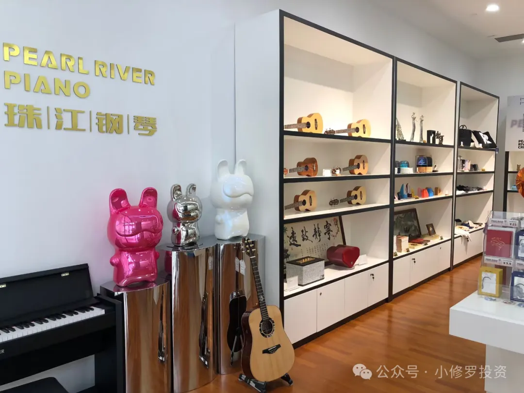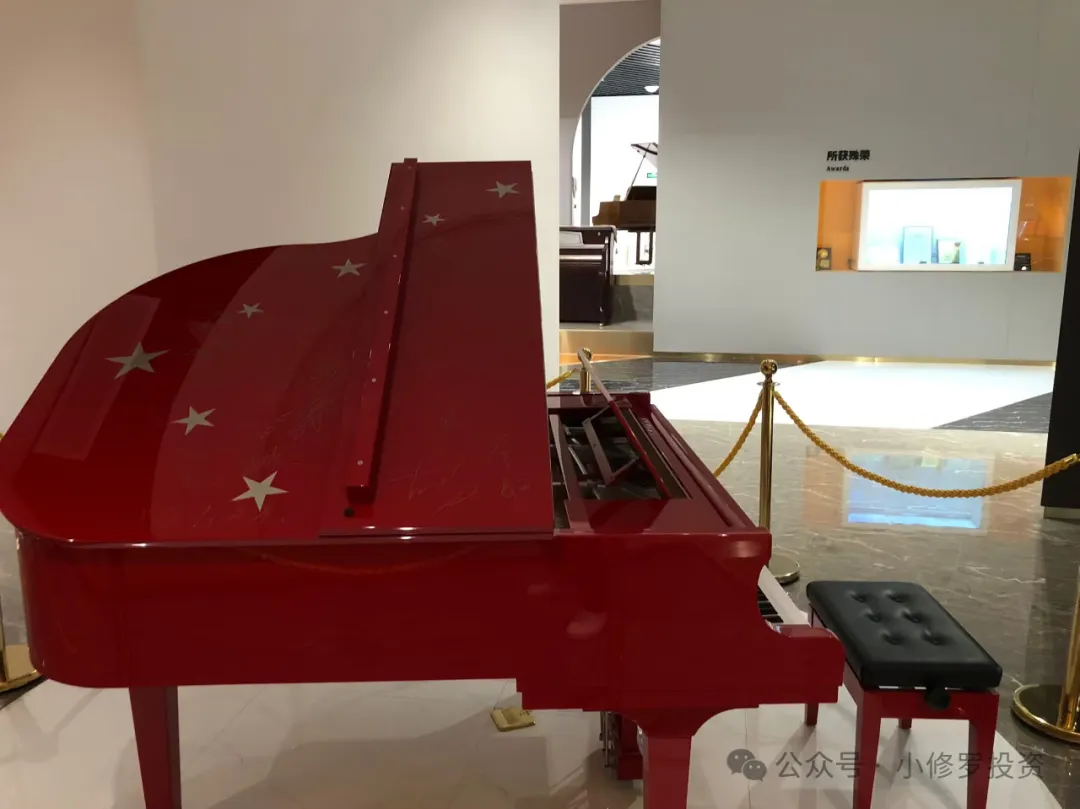展厅展示了公司和钢琴行业的历史,收藏着珍贵的古董钢琴,还有各式吉他和文创纪念品。