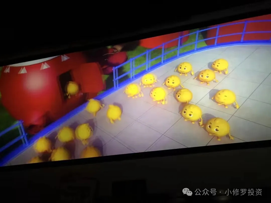 在工厂里的电影院,我戴着3D眼镜,观看了3D动画电影《小黄豆与娅米的快乐冒险》