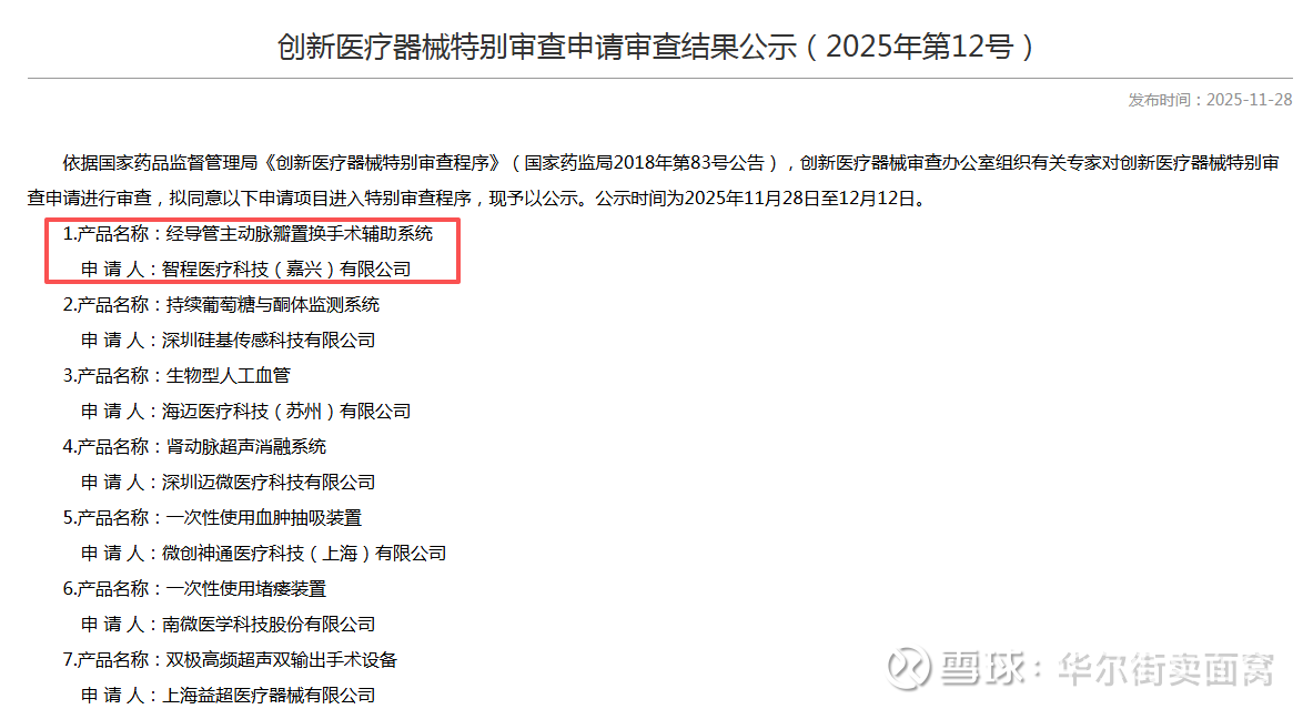 其中智程医疗科技(嘉兴)有限公司申请的“经导管主动脉瓣置换手术辅助系统”位列其中。