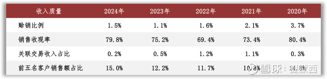 观察收入质量,赊销比例不高,而销售收现率较低。赊销比例根据应收账款余额计算,公司销售收现率持续较低或与应收票据背书或贴现有关。
