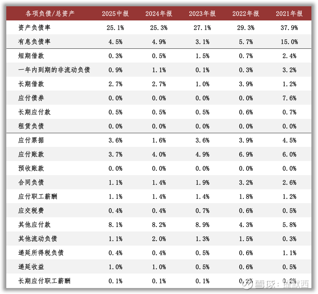 截至2025年二季度末,公司资产负债率25%,有息负债率5%,无重大对外担保。另外,2025年二季度末公司其他应付款包含资金拆借本息5.13亿元,占总资产的比例约为4.7%。