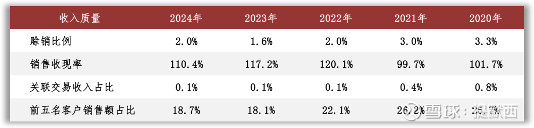 观察收入质量,相关指标表现良好:赊销比例和关联交易收入占比不高,客户集中度也不高。