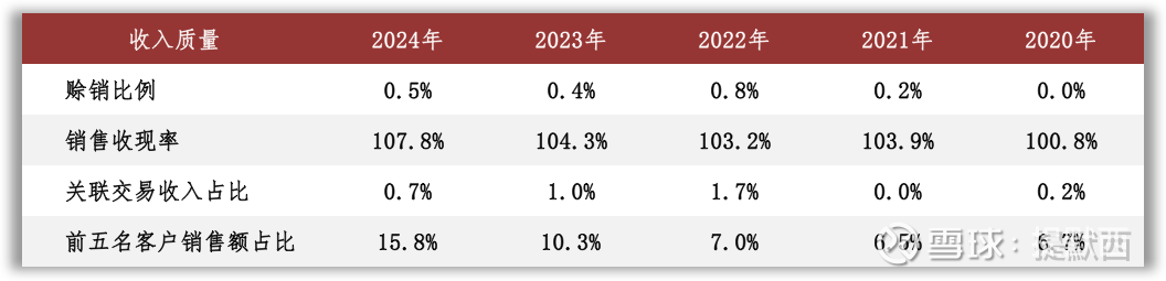 观察收入质量,相关指标表现良好:赊销比例和关联交易收入占比不高,客户集中度也不高。