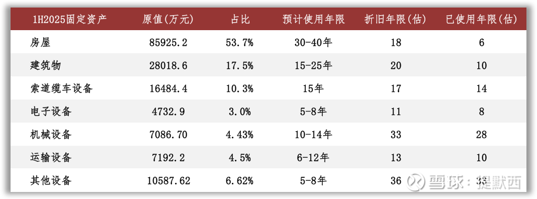 核心资产中重点关注固定资产和无形资产等。根据2025年中报数据估算,房屋在固定资产中占比54%(按原值计算,以下同),折旧年限约为18年,已使用年限约为6年;建筑物在固定资产中占比18%,折旧年限约为20年,已使用年限约为10年。