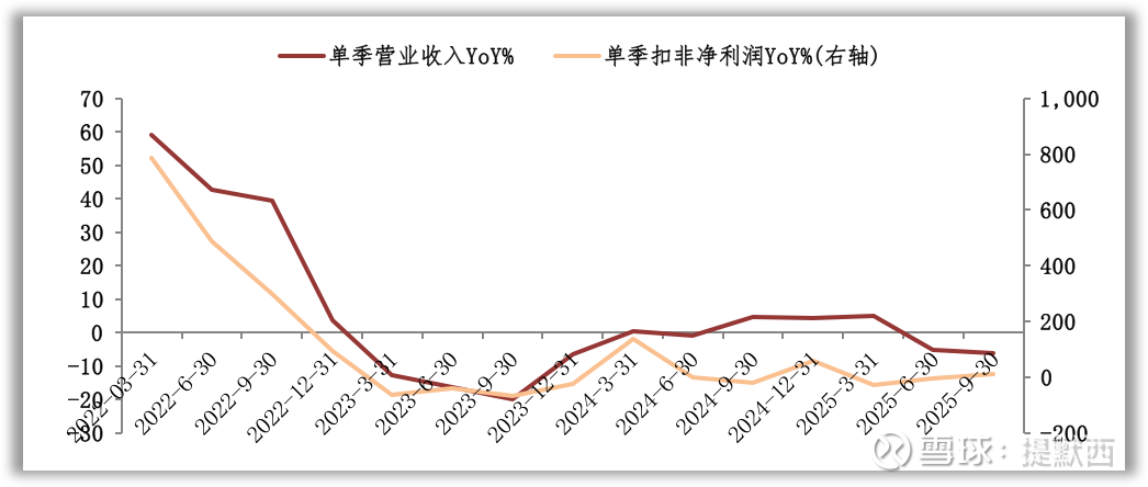 观察营收增速与扣非净利润增速的变化,近三年的景气低点出现在2023年三季度。根据财报中对经营情况的分析,影响景气度的外部因素包括宏观经济、原材料价格波动、汇率变动等。