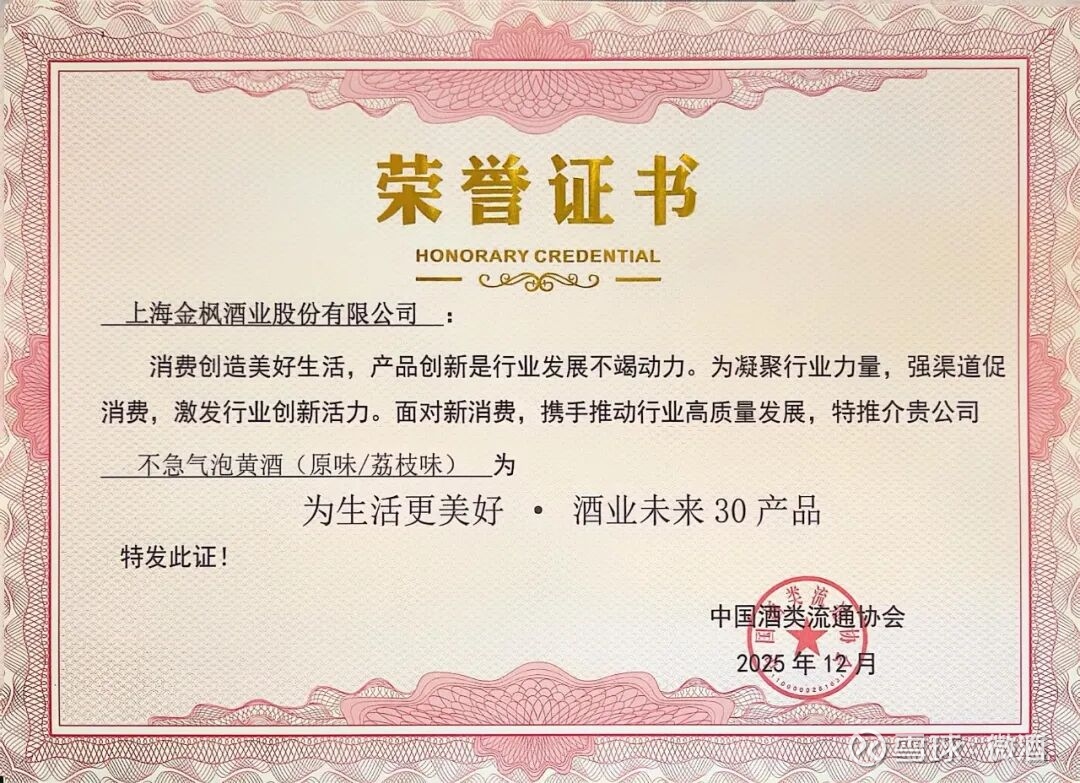 从一款创新产品的年轻化布局,到一个获评“未来标杆”的行业案例,在“不急”的从容步伐中,金枫酒业以“慢”功夫打磨产品,以“稳”心态布局战略,最终酿就既承袭匠心底蕴、又能与时代同频共振的佳品,为行业发展提供了新的可能。