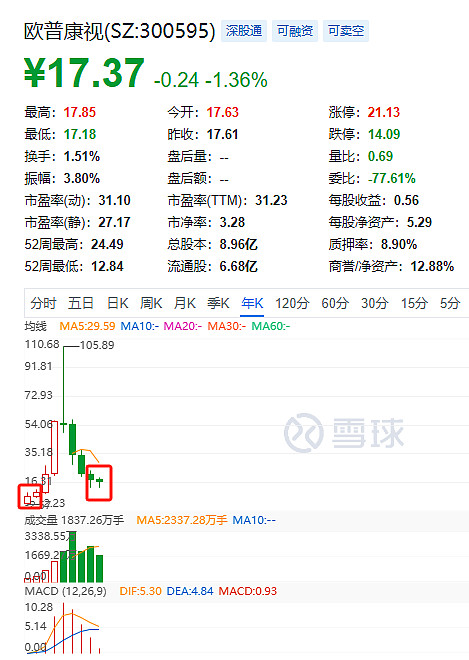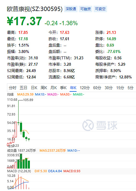 从17年到现在,欧普康视的年线直上直下,真的经典。