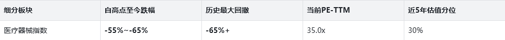 医疗器械指数:自2021年高点至今跌幅 -55%~-65%,最大回撤 -65%+
