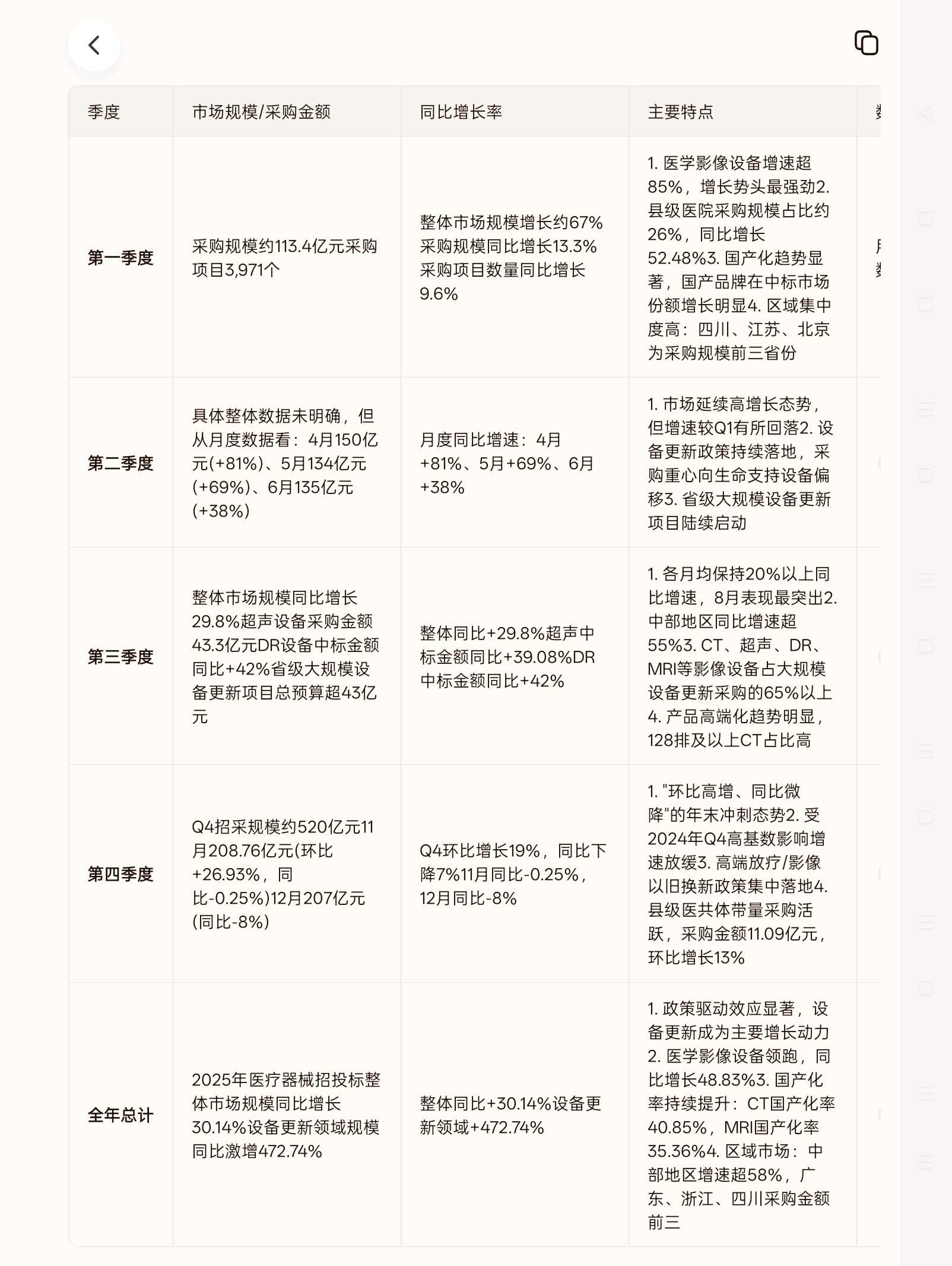 总体来看,2025年医疗器械招标市场在设备更新政策推动下实现了全面复苏,虽然季度间增速有所波动,但整体保持了30%以上的同比增长,为2026年行业持续发展奠定了坚实基础。