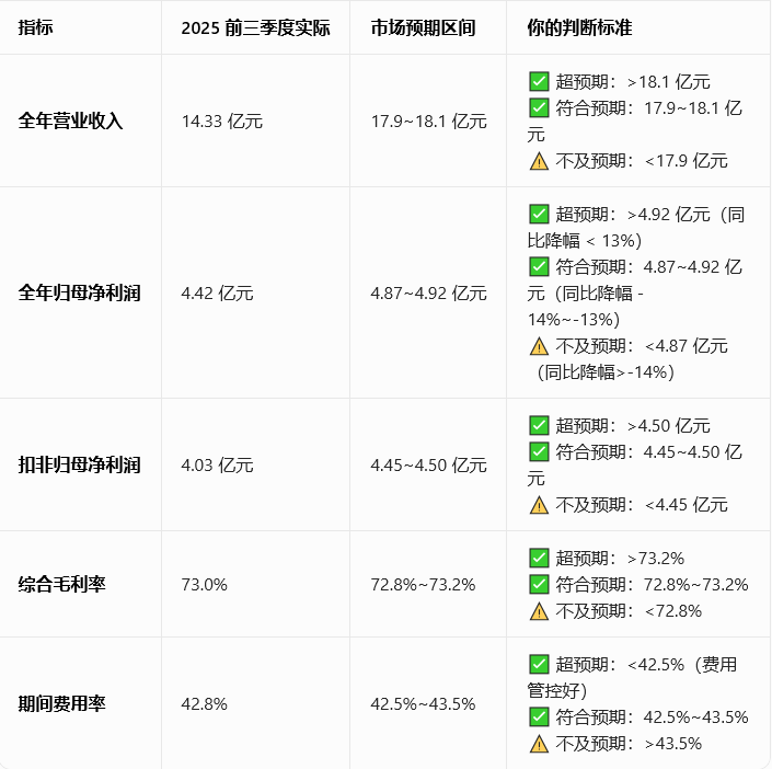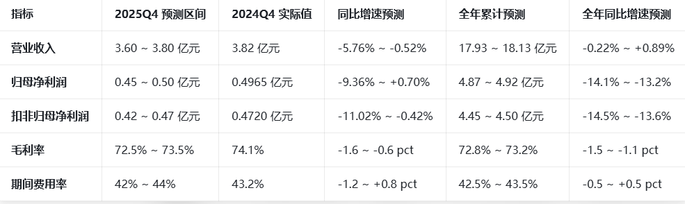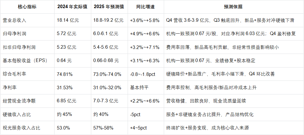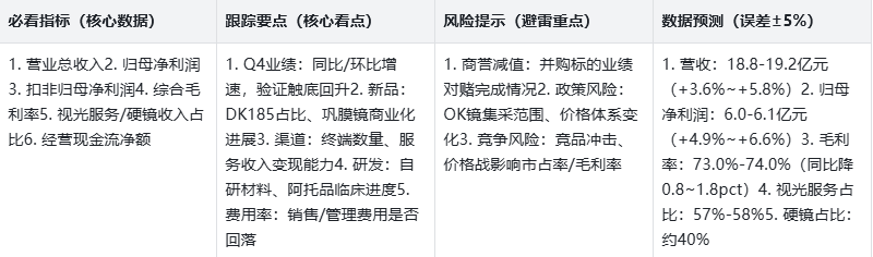 (二)欧普康视 2025 年 Q4 业绩关键指标预测表(基于前三季度业绩回暖趋势假设)
