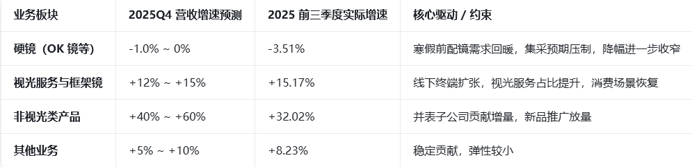 3. 非硬镜业务占比:离焦框架镜、护理产品、视光服务的收入增速,验证“全视光”战略落地效果。