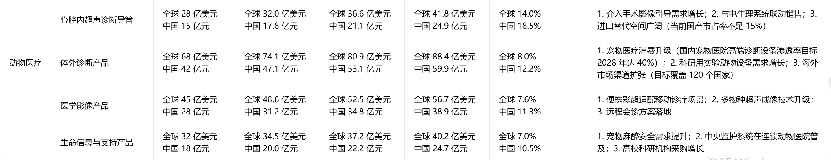 新兴业务未来 3 年 CAGR 预计达 35% 以上,其中微创介入(CAGR 40%+)、动物医疗(CAGR 45%+)成为核心引擎;2028 年新兴业务收入目标突破 150 亿元,占整体收入比重提升至 30%,支撑公司长期复合增速 15%+。