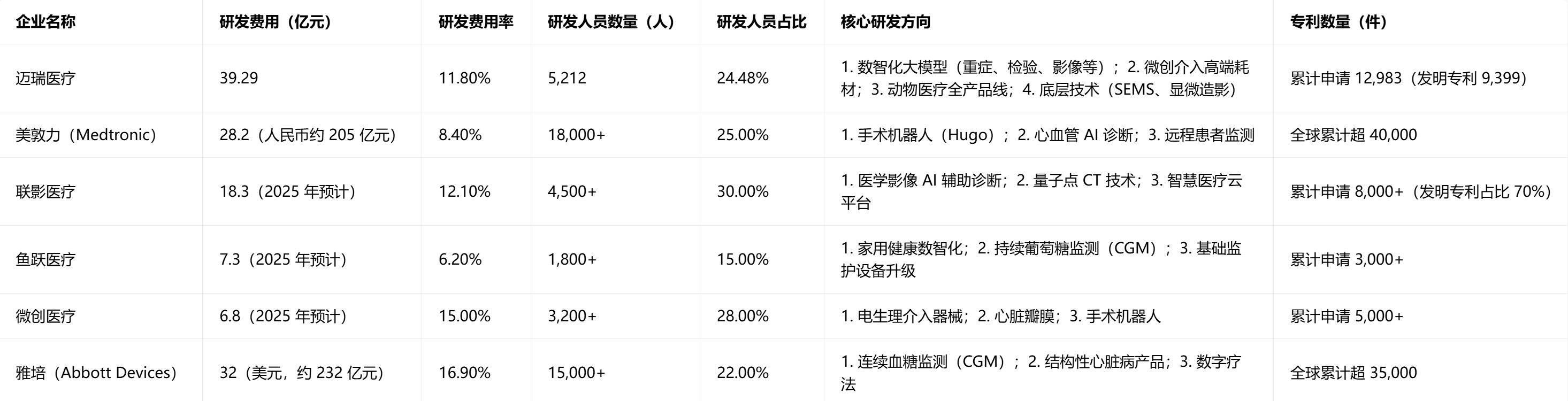 (一)研发投入核心数据对比(2025 年)