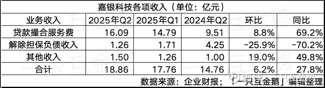 前面「一只互金鹅」提到奇富科技在Q2重资本模式的助贷业务更加,嘉银科技在本季策略就不同,其Q2解除担保负债收入1.26亿,同比下降70%,财报解释为公司提供担保服务的平均未偿贷款余额减少。
