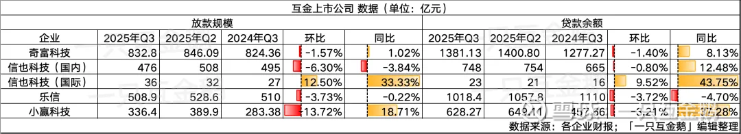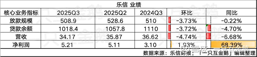 乐信在2025年Q3放款508.9亿(同比-0.22%,环比-3.73%),截至9月末贷款余额1018.4亿元(同比-4.7%,环比-3.72%)。