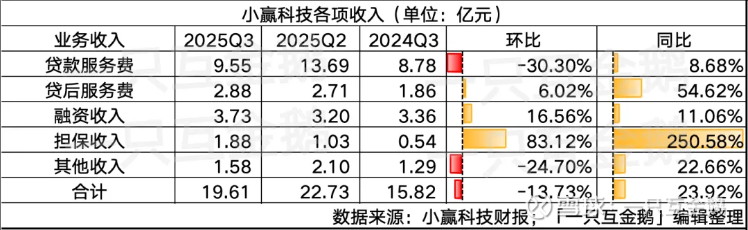 具体看贷款服务费收入9.55亿元,同比增长8.68%,环比减少30.3%,财报解释同比增长是因为放款规模增长。担保服务同比增长较多,主要是扩大了担保相关的贷款服务。
