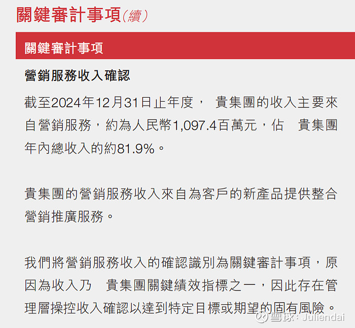 PS:有人说收入大头是营销服务收入,这部分恰恰是疑点最多的,包括大客户为供货商,与股东关联交易,落地项目信息不明等,连安永出具的审计报告都做了关键审计事项的风险提示,内容见24年年报截图。