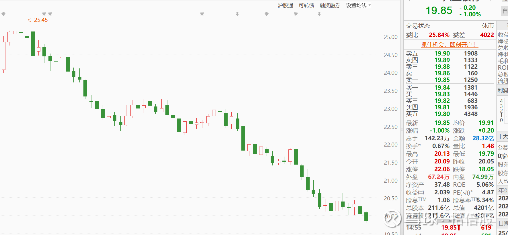 这波牛市,924行情之前,国家队一直在买入银行,本意是救世,但是当时却把资金全部吸引到了银行,所以别的股票跌的更惨。但是无论如何,这波牛市的上涨是从银行开始的。我翻看了一下银行,近期银行跌的很惨。