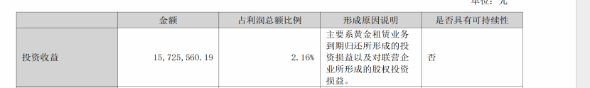 从毛利润到营业利润这部分,毛利润减少了1.12亿,但营业利润只减少了0.45亿,主要是中间投资收益增加了7千万,这7千万主要是由于黄金租赁平仓导致的。