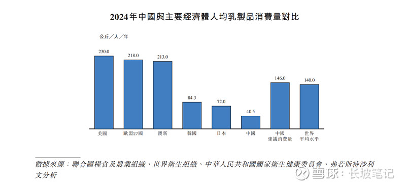 这两天在看君乐宝刚递交的港股招股书。同市面上很多人提到的一样,君乐宝也提到因为中国的人均乳制品消费量比欧美发达国家和世界平均乳制品消费水平低很多,所以中国乳制品行业需求还有很大的增长空间。这看起来挺有道理的,也经常被很多乳制品上市公司写在自己的年报和招股书里。