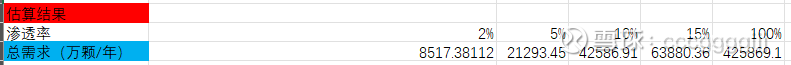 虽说我的估算思路与万联证券一致,但由于基础的假设数据不同,和计算过程可能有些许不同,万联最后的市场空间估算结果是我的两倍。