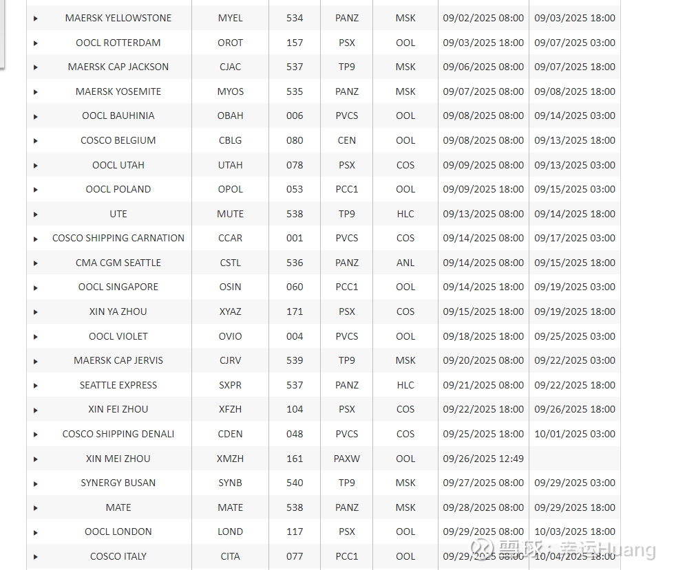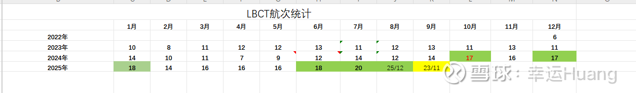 8月预计到港23个航次,实际完成了25个航次,其中2个航次延期到9月,但是新增航次4个。需要注意的是25个航次里面海控自己的航次为12个航次(跟去年相同),在去年9月份之前LBCT的航次表里是只有海控自己航次的,所以去年10月以后表里航次数量明显上升。