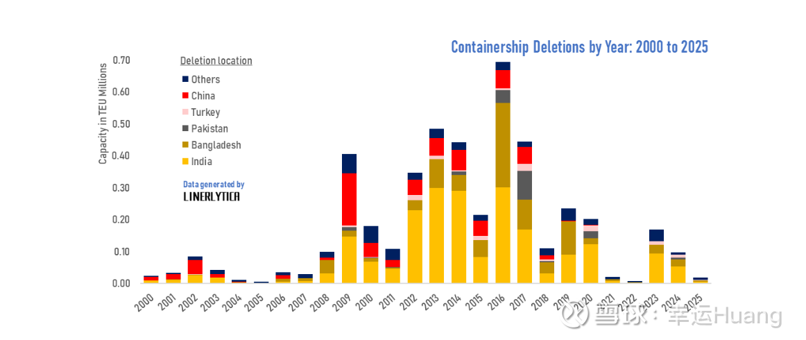 这个拆解量确实是夸张啊。。。虽然运价比24年大幅下跌但是租船费率持续高位比24年同比增加很多,一方面都在说供给过剩另一方面船司持续在抢船(自然也不愿意拆解),到底谁对谁错?接下去一两年见分晓。