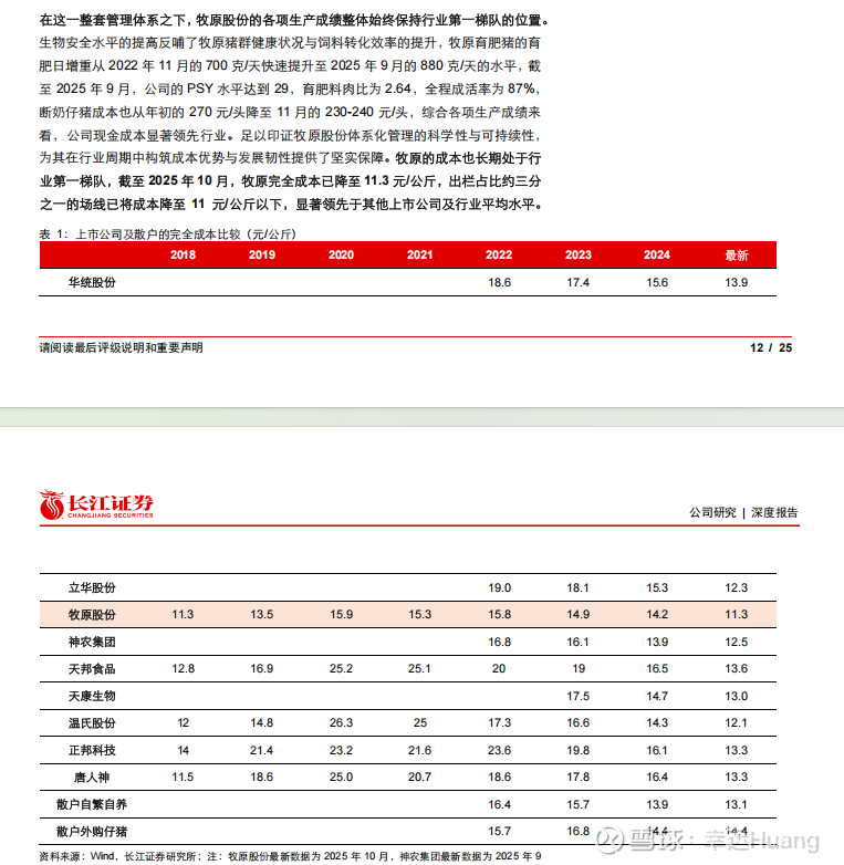 养殖生产成绩不断提升,成本控制方面全年成本持续下行,已经完全走出了疫情后快速扩张导致的成本失控,成本已经下降到了历史最低位附近,比行业平均水平低了近2块,比行业相对较优的温氏和神农低了近1块。