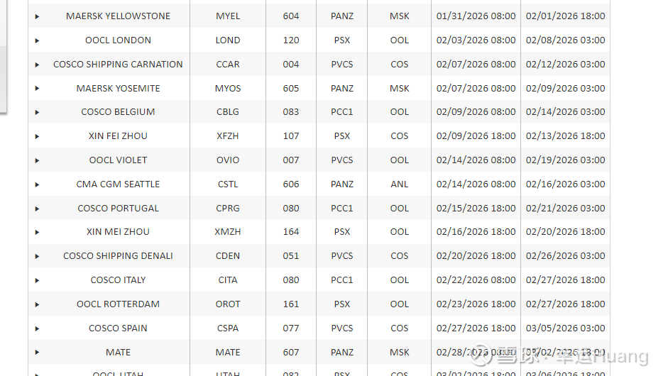 26年2月预计到港14个航次,其中海控自己为9个航次,正常淡季航次。