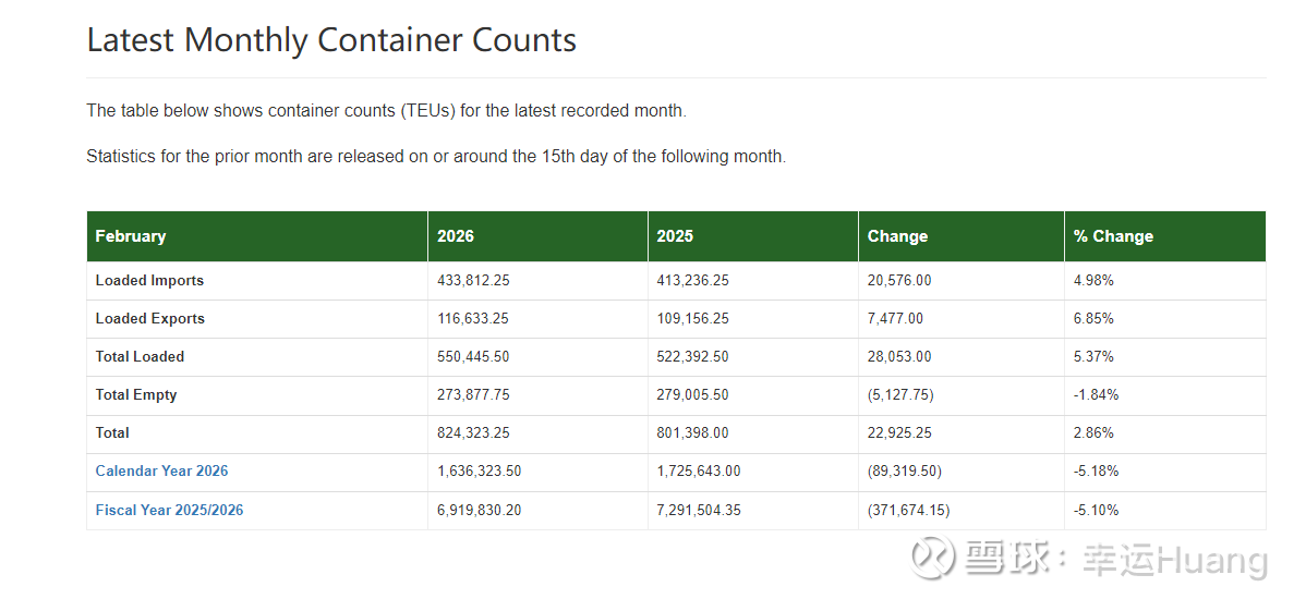 2602月重箱进口43.38万TEU(23年2月仅为24.9万TEU,23年货量最高的六月也仅为43.5万TEU,23年的运价低主要来自疫情超高需求之后的去库存周期,并非是一个正常年份,务必注意这一点),环比略漲,同比上漲4.98%(春節延後),略略高于月初42万TEU左右的预期。3月目前看环比略略下降在40万TEU左右,由于去年同期基数仅为38.6万TEU,预计同比增长。