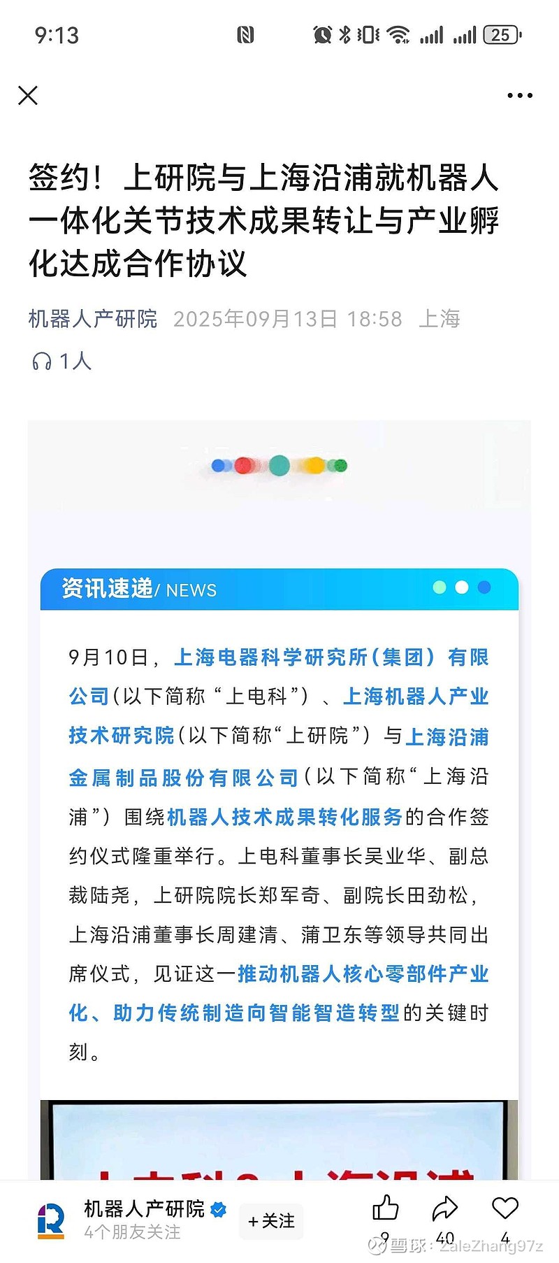 签约仪式上,上海沿浦董事长周建清发表致辞。他表示:“上海沿浦深耕汽车零部件领域多年,2024 年销售额已突破 23 亿元,在全国 10 余个城市设立分公司,在模具设计制造、座椅骨架生产、冲压件与注塑件研发等领域积累了深厚的制造基础与产业资源。但面对产业升级浪潮,同样深知‘转型则进,守旧则退’。此次与上电科及上研院合作,正是突破传统制造边界、切入人形机器人赛道的战略选择 —— 未来将依托上研院在机器人技术领域的行业地位与研发优势,加速打通‘汽车零部件制造,到机器人核心零部件,乃至机器人整机的研发生产’的链路,实现技术与产能的深度融合,打开企业第二增长曲线。我们将通过深度合作,全力投入资源,推动关节模组技术从图纸走向生产线,重塑企业核心竞争力,向智能智造标杆企业迈进。”