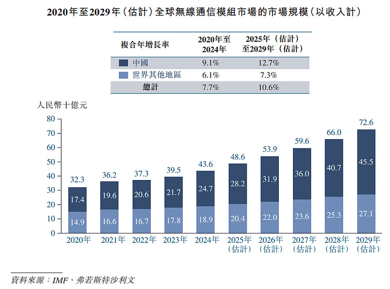 2020年,全球无线通信模组市场规模323亿元,2024年436亿元。