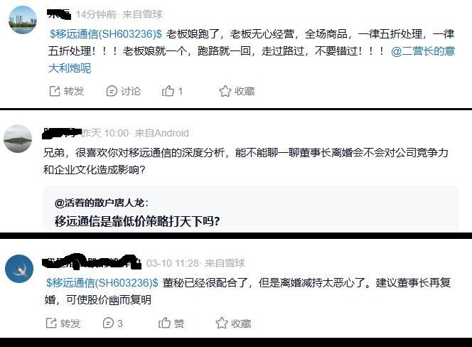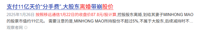这不,移远通信董事长今年年初离婚了,没想到当时挨骂,还一直被惦记到现在都不放过。