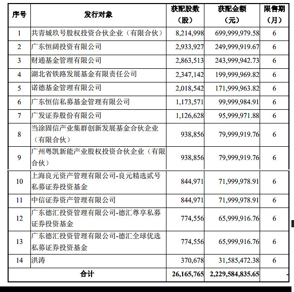 $移远通信(SH603236)$ 增发终于完成了,发行价85.21元,融资22.3亿元,略低于预期。参与增发的大多数都是私募基金,只有财通和诺德两家公墓,获配合计4.16亿,还有广发和中信两个券商,合计获配1.68亿。剩余16亿元全是私募投资和个人。