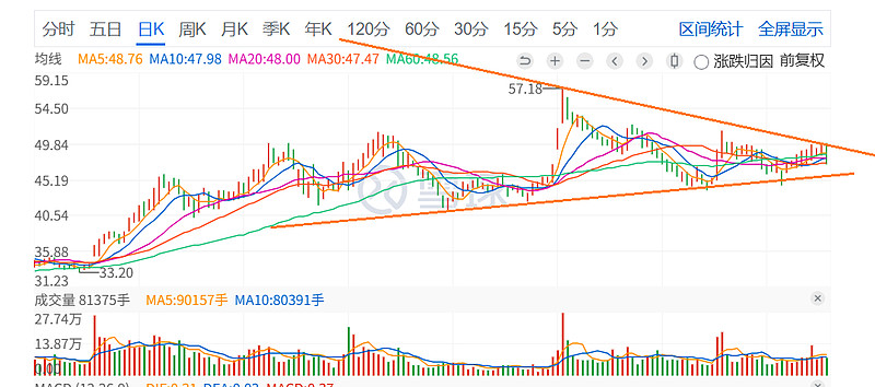我说说技术面吧,恒铭达技术上明显是一个三角形收敛形态,均线聚合,是一个要做出方向性选择的时刻。周一或许就是方向揭晓的时刻。我等主力大哥亮牌以后,再把我的年报简析发出来吧,以免有诱导市场的嫌疑。