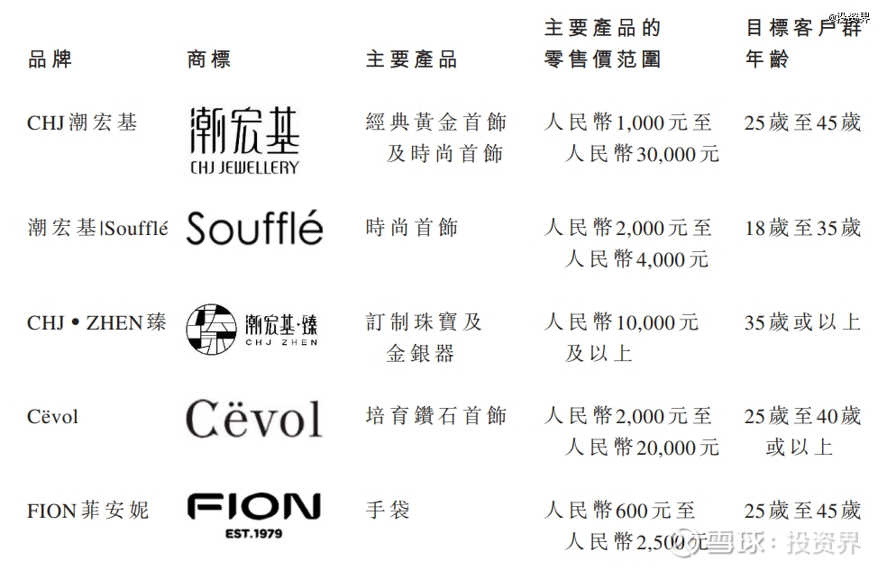 翻开招股书,潮宏基将自己定义为一家深耕东方文化的珠宝品牌,致力于国家非遗花丝技艺。以主要品牌CHJ潮宏基为基础,公司旗下还有潮宏基|Soufflé、CHJ·ZHEN臻,以及新培育钻石品牌Cëvol,还有新收购的时尚手袋品牌FION菲安妮以此划分为珠宝和手袋两大业务。
