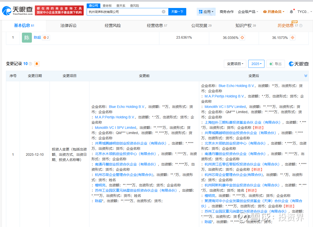 投资界12月18日消息,阿斯利康中金医疗产业基金今日宣布完成对杭州荷声科技有限公司(以下简称为“荷声科技”)Pre-A轮融资。本轮融资由阿斯利康中金医疗产业基金领投,中芯聚源、杭州高新金投、上海拙朴等机构共同参与。