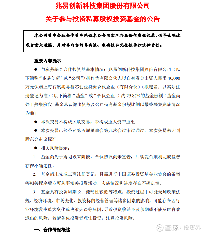 投资界消息,3月3日,兆易创新科技集团股份有限公司(以下简称兆易创新)发布公告称,公司拟以自有资金4亿元作为有限合伙人,认购上海石溪兆易智芯创业投资合伙企业(拟定名)25.87%的基金份额,成为该基金第一大有限合伙人。