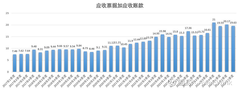 我统计了一下公司2017年以来的营收票据加应收账款(图1),2025年3季度已经来到了20亿(公司净资产也就20亿(图2))。有股友仔细研究过公司营收票据加应收账款的回款情况吗?我有点担心在熊市时坏账减值过高引起公司股价大幅度下跌。@让我们慢慢变富2050 @引路人小叮当 @柳川股神 @黄中李