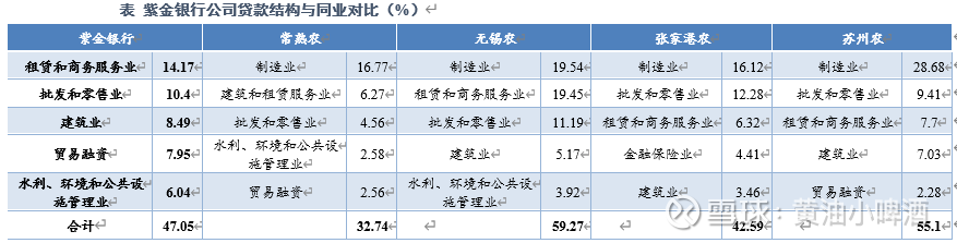 公司贷款方面,2024年末紫金银行公司贷款占比78.04%,低于无锡农排名5家银行中的第2位,略高于苏州农。贷款行业对比来看,除紫金银行第一大行业为租赁和商务服务业外,其余银行第一大行业均为制造业。而城投在行业分类上多被归类于租赁和商务服务业,在城投化债大的“要求”与市场变化之下,城投融资成本持续下降,尤其是江苏这样强区域的城投,这或许也是紫金银行息差低的一个原因。另一个差异在于房地产行业,紫金银行房地产业贷款余额80.96亿元,占贷款总额的比重为4.29%,显著高于其他银行房地产贷款占比,其他较高的为苏州农的2.24%,最低的常熟农行仅0.71%。从集中度来看,紫金银行贷款的行业集中度较适中,前五大占比47.05%,低于无锡农和苏州农,高于常熟农和张家港农。