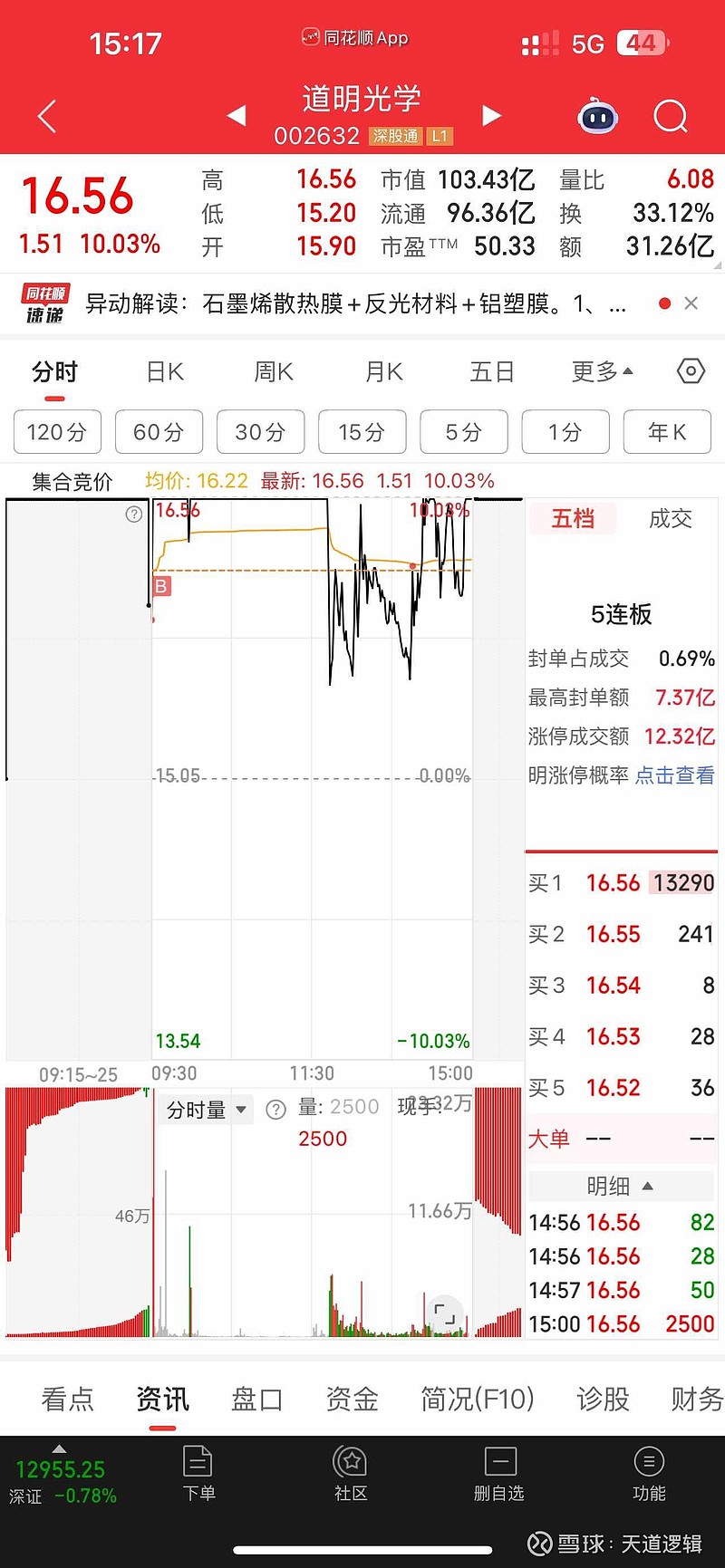 4.利好的产业链是很多的,这里我不细聊,之前的帖子细聊过可以去找找。我只聊我目前看好的也是我知行合一今天买入了的散热材料龙头公司:道明光学,石墨烯散热膜已应用于努比亚等品牌手机,是AI手机散热领域的上市公司龙头 包括福蓉科技也是我看好的主板票今天也成功晋级 16.16成本 20% 仓位