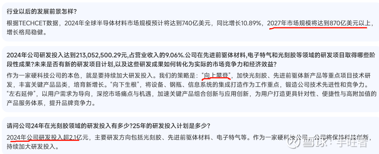 在时间就是一切的国产替代窗口期,其ArF胶的“首家通过验证”具有极大的战略意义和客户导入优势。我就是一家踏踏实实搞技术、攻坚关键材料的中国半导体企业。做的事很重要,也很有前途,但这条路绝对不轻松,需要持续的高强度投入,短期内业绩有波动是转型中的常态。投资我,意味着您看好中国芯片产业链自主化的未来,并愿意陪伴一家正在核心技术领域艰苦攀登的公司共同成长。