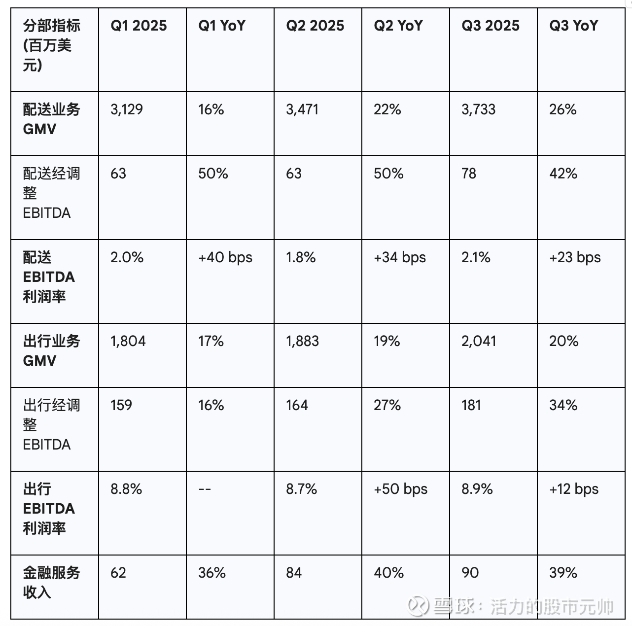 出行和配送分部已成为稳定的利润中心,而金融服务分部正缩减亏损。