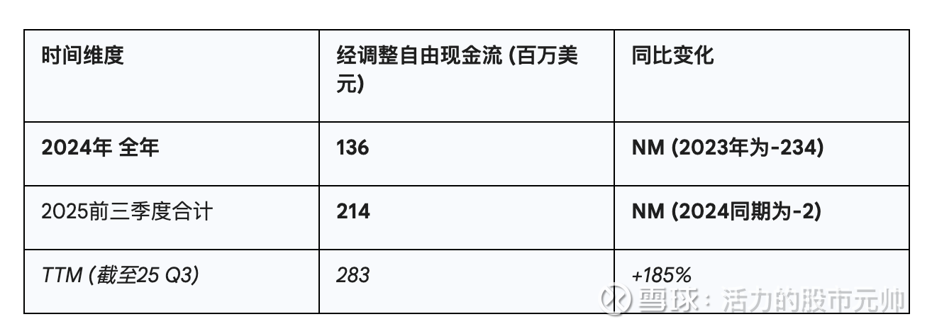 经调整自由现金流(Adjusted FCF)剔除了数字金融营运资金波动,反映了核心业务的造血能力。