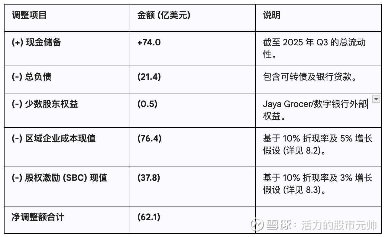 成本中心对股东价值的压制透明化:SOTP 允许我们将巨大的股权激励(SBC)视为一种“永久性负债”进行资本化减除,从而清晰地识别核心业务价值与冗余支出之间的关系。