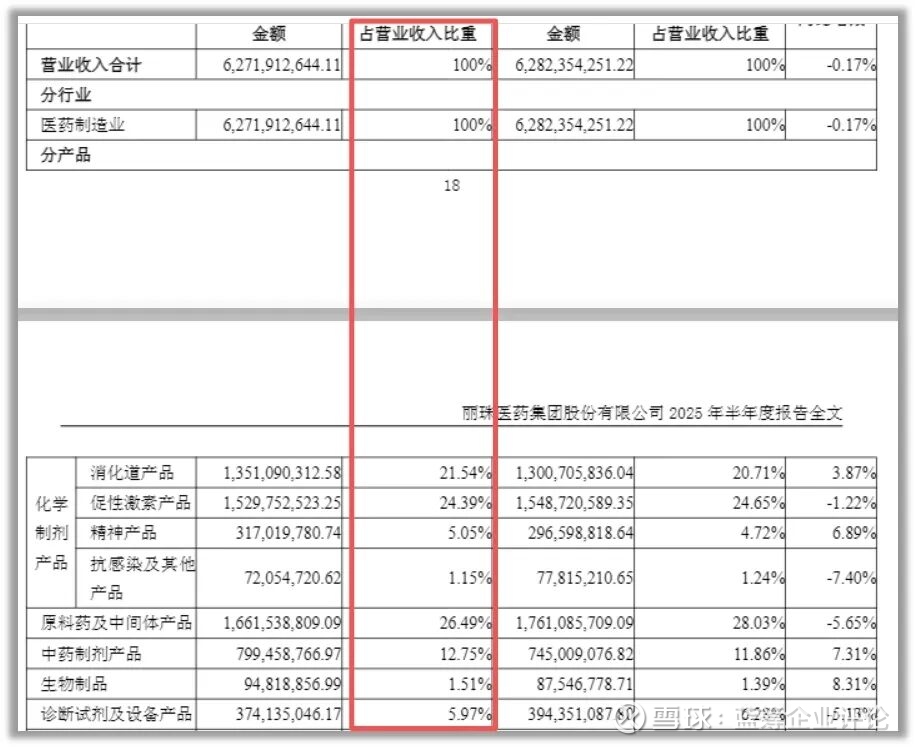 丽珠医药收入构成(资料来源:公司2025年中报)
